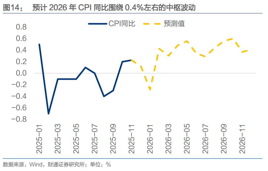 综合前述因素,我们预计 2026 年核心 CPI 同比将围绕 1.0% 中枢窄幅震荡,较2025 年全年小幅上行,但将低于今年 10 月 1.2% 的阶段性高位。