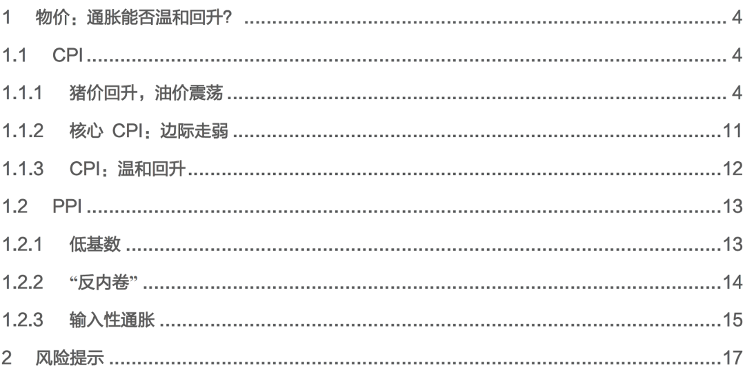 (2)国内居民就业及收入修复不及预期:居民就业及收入是核心CPI修复的关键,若前者修复不及预期,相应会影响核心CPI的回升节奏;