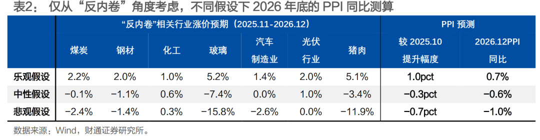 这一步主要考虑推进“反内卷”的行业在2026年的价格变化。